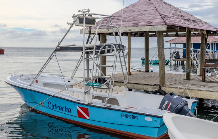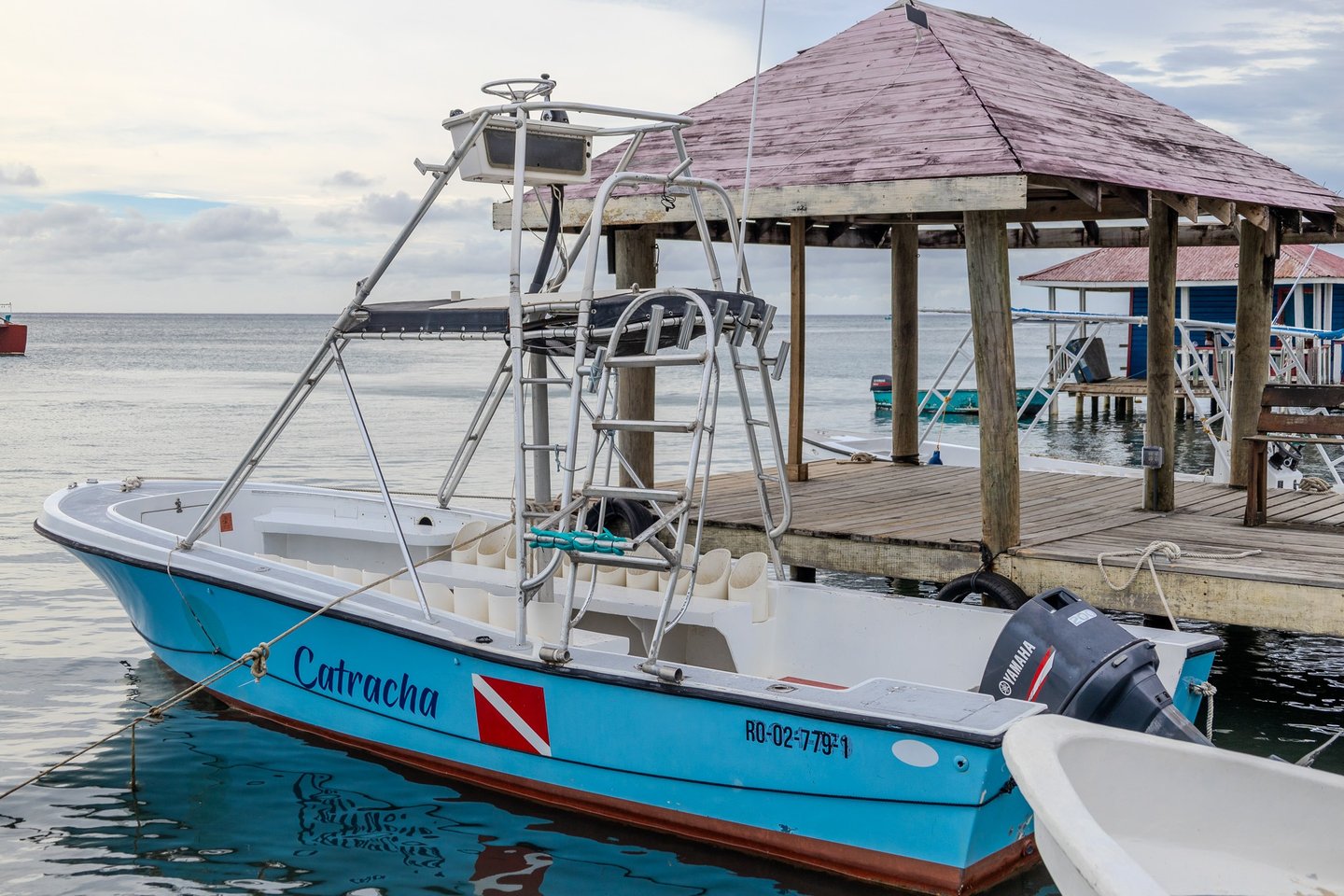 Catracha is the larger of our two boats. She has capacity for up to 8 divers. Great for having a little more space to get comfortable or when bringing a few extra snorkelers along.